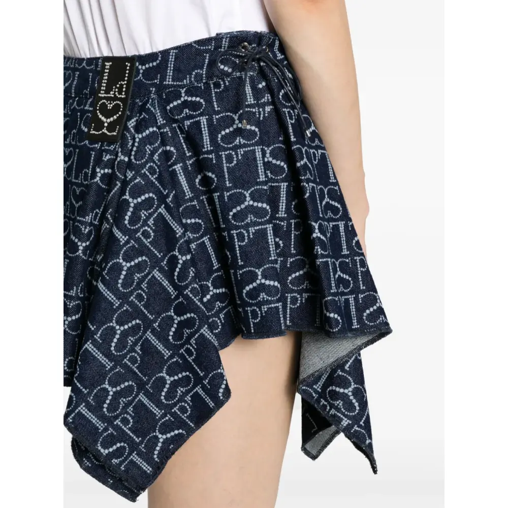 · эта юбка с асимметричным подолом должна сидеть чуть ниже линии талии