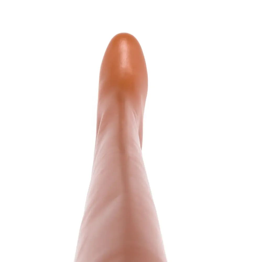Коньячный коричневый, телячья кожа, золотистая фурнитура, кожаная подкладка, закругленный носок, застежка на зажиме сзади, кожаная стелька с логотипом, высота по колено и высокий блочный каблук.