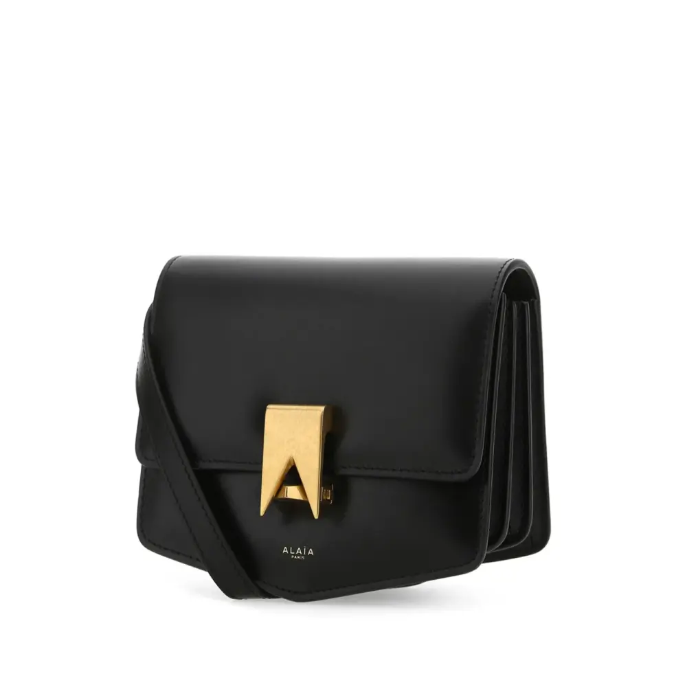 Черный, телячья кожа, золотистый логотип, золотистая фурнитура, прорезной карман сзади, регулируемый ремень на плечо, откидной клапан, застежка на зажиме и несколько отделений.