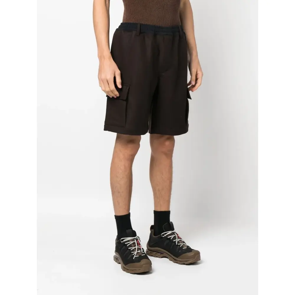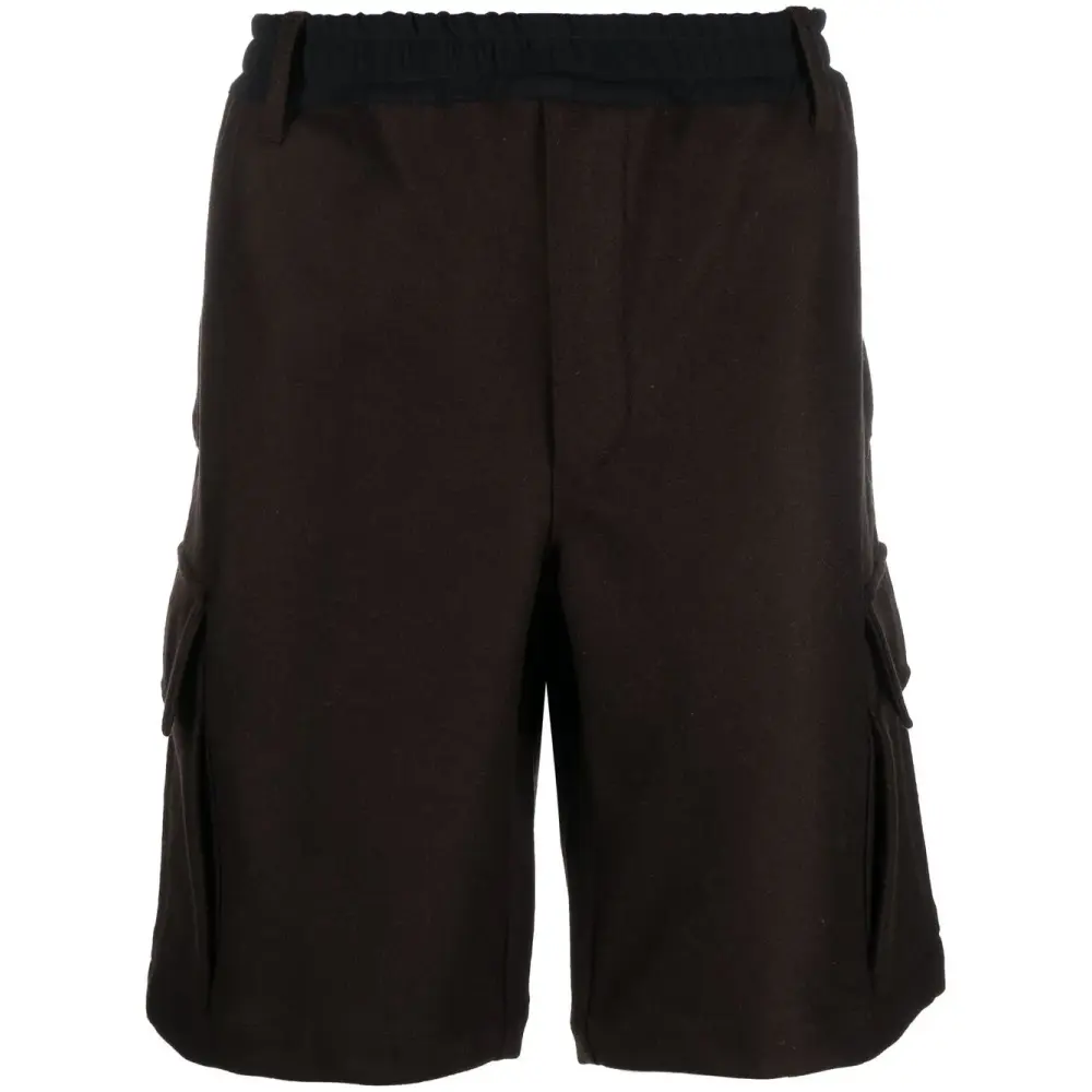 Расцветка Earth Brown, смесь хлопка и шерсти, эластичный пояс, петли для ремня, потайная застежка спереди, два прорезных кармана по бокам, накладной карман сзади, два накладных кармана по бокам и длина выше колена.