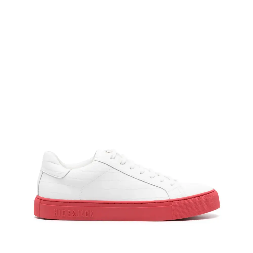 Кеды Essence Tuscany с тиснением от Hide&Jack. Тисненая отделка, заплатка с логотипом на язычке, шнуровка спереди, плоская резиновая подошва и закругленный носок. Цвет: белый.