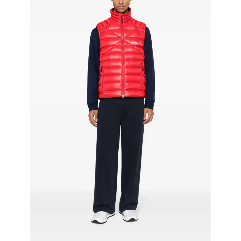 Ярко-красный, наполнитель из пуха и перьев, переработанный полиэстер, логотип спереди, дутый материал, стеганая модель, высокий воротник, застежка на молнии спереди, два кармана на молнии по бокам, без рукавов и прямой подол. Этот товар как минимум на 50% состоит из переработанных или повторно использованных материалов. Узнать больше о том, какие товары получают отметку «Ответственный выбор», можно из материала «Как мы оцениваем экологичность и этичность».