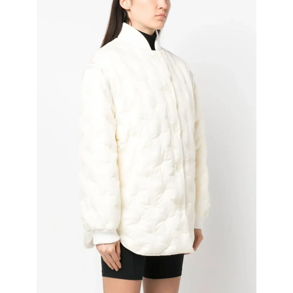 Белый, стеганая модель, манжеты в рубчик, съемные рукава, воротник-стойка, застежка на пуговицах спереди, нагрудный накладной карман, два кармана по бокам, закругленный подол сзади и двусторонний дизайн.