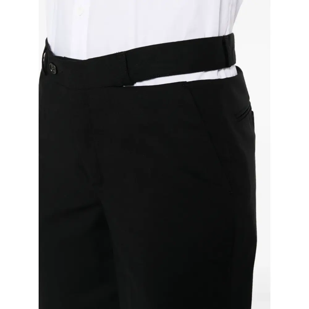 · узкий крой: брюки плотно сидят на талии, облегают бедра и голени, но не обтягивают лодыжки
