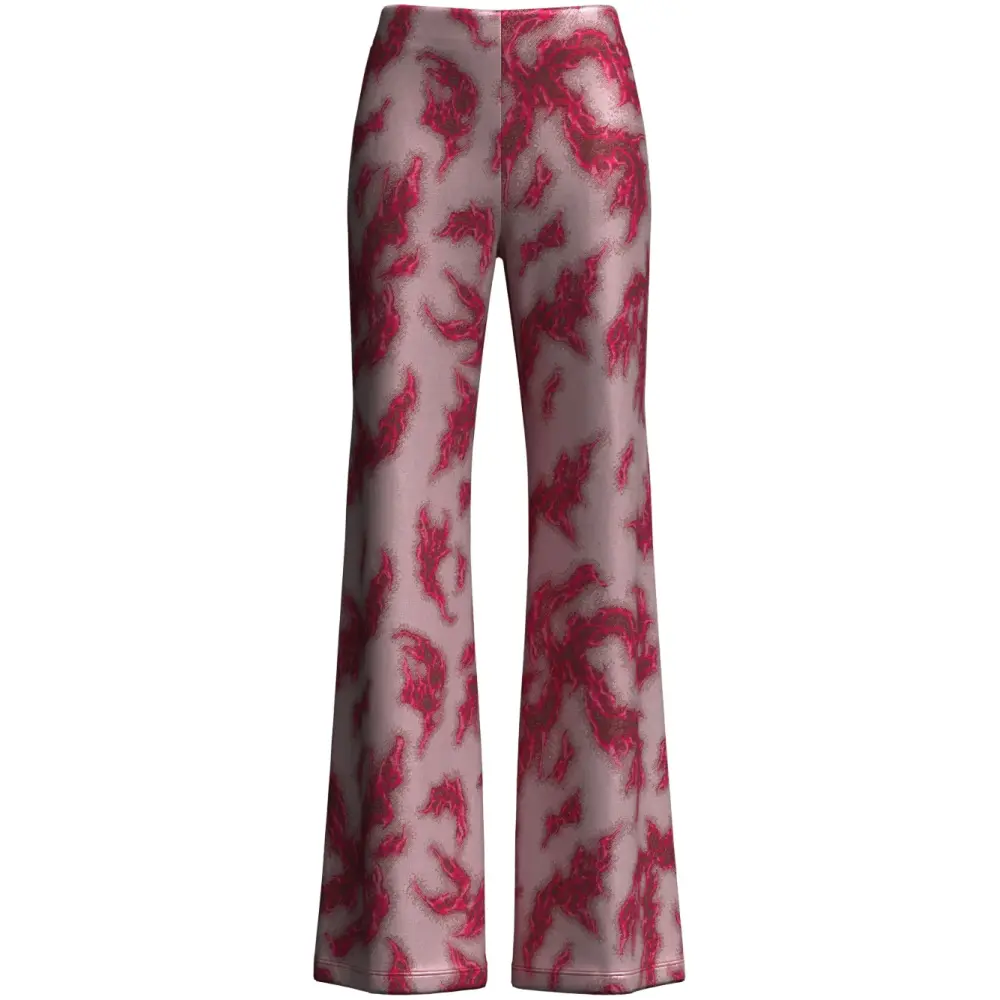 Малиновый, разноцветный, сплошной графичный принт, завышенная талия, расклешенный крой и эластичный пояс.