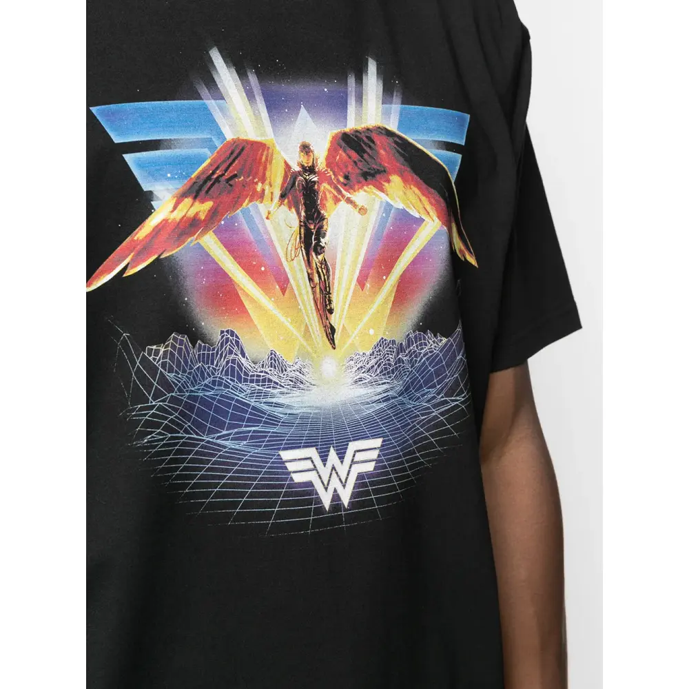 Графичный принт, круглый вырез и короткие рукава. Цвет: черный.