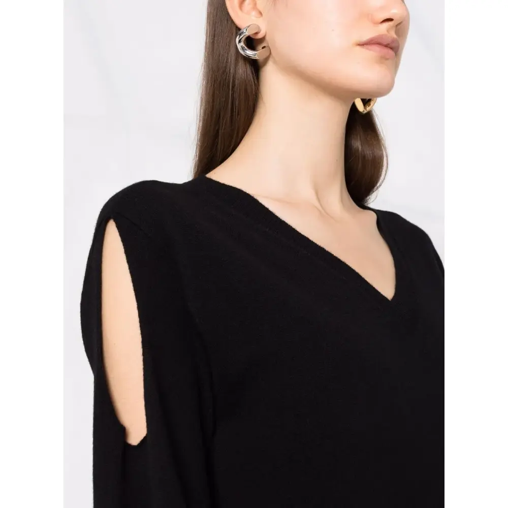 Вырезные детали, V-образный вырез, длинные рукава и прямой подол. Цвет: черный. Узнать больше о том, какие товары получают отметку «Ответственный выбор», можно из материала «Как мы оцениваем экологичность и этичность».