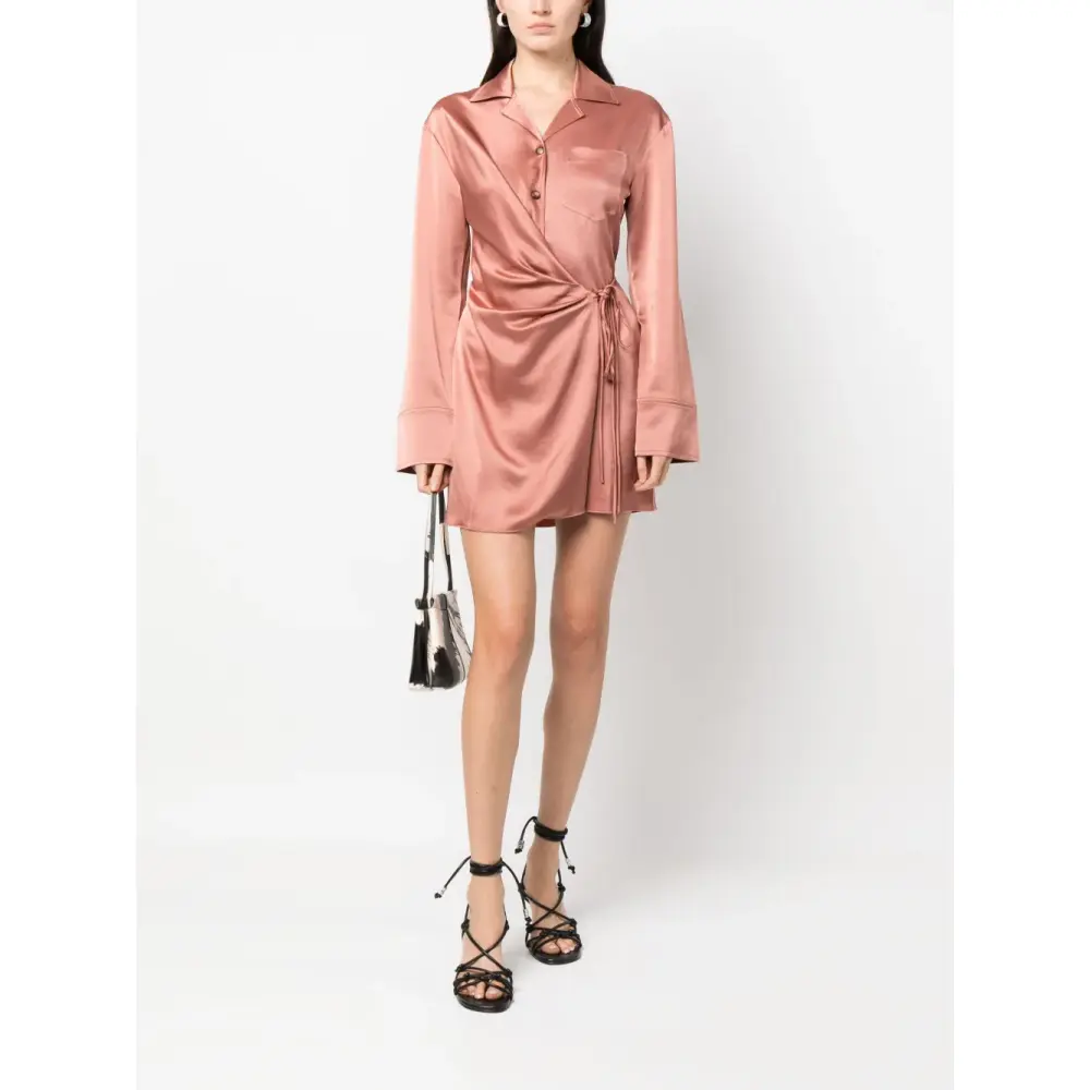 Розовый, смесовый переработанный полиэстер, зазубренные лацканы, нагрудный накладной карман, застежка на пуговицах спереди, завязки по бокам, длинные рукава и прямой подол. Узнать больше о том, какие товары получают отметку «Ответственный выбор», можно из материала «Как мы оцениваем экологичность и этичность».