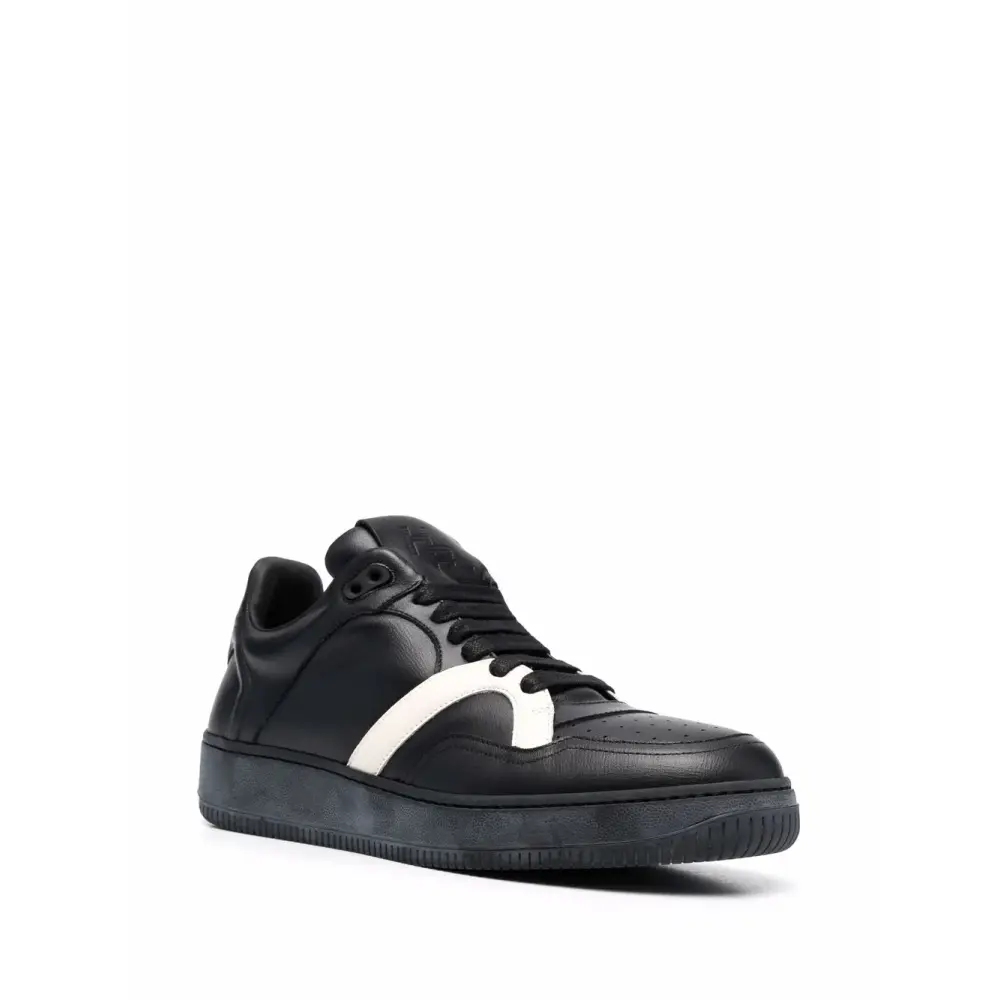 Тисненый логотип на язычке, стелька с логотипом, перфорация, закругленный носок, шнуровка спереди и плоская резиновая подошва.