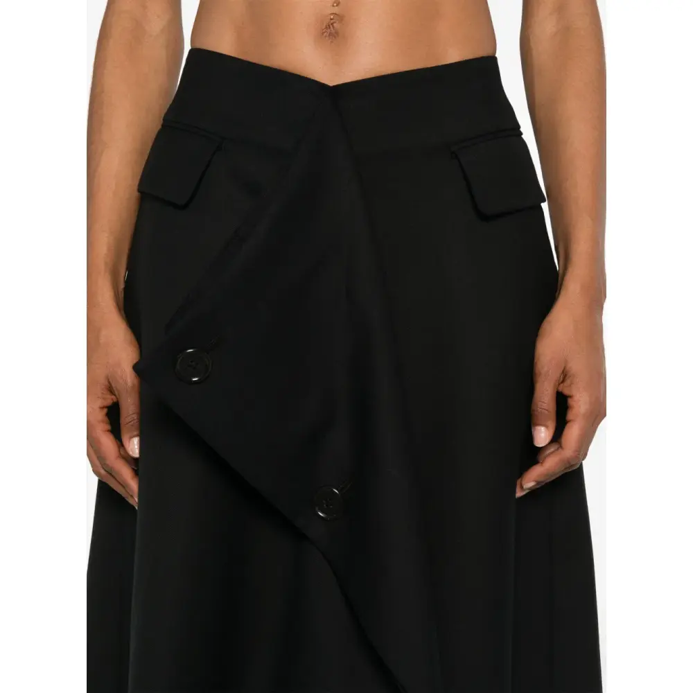 · эта юбка с асимметричным подолом должна сидеть чуть ниже линии талии