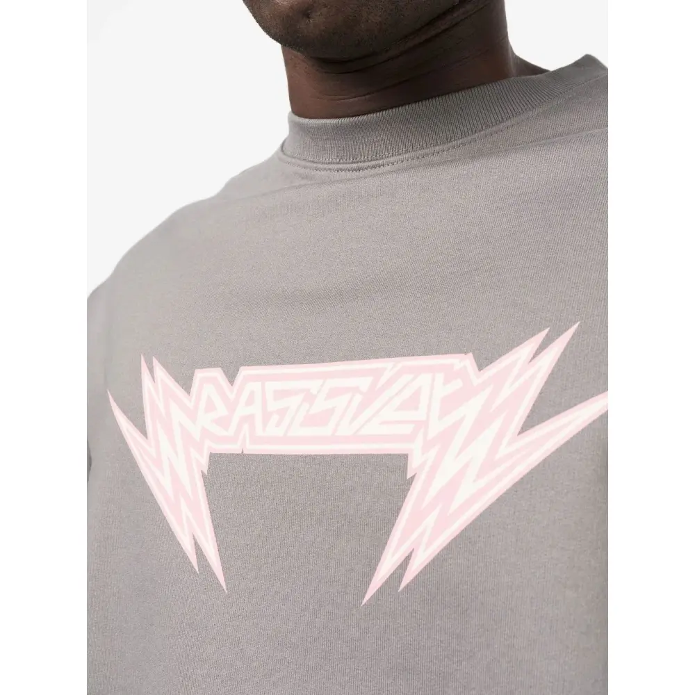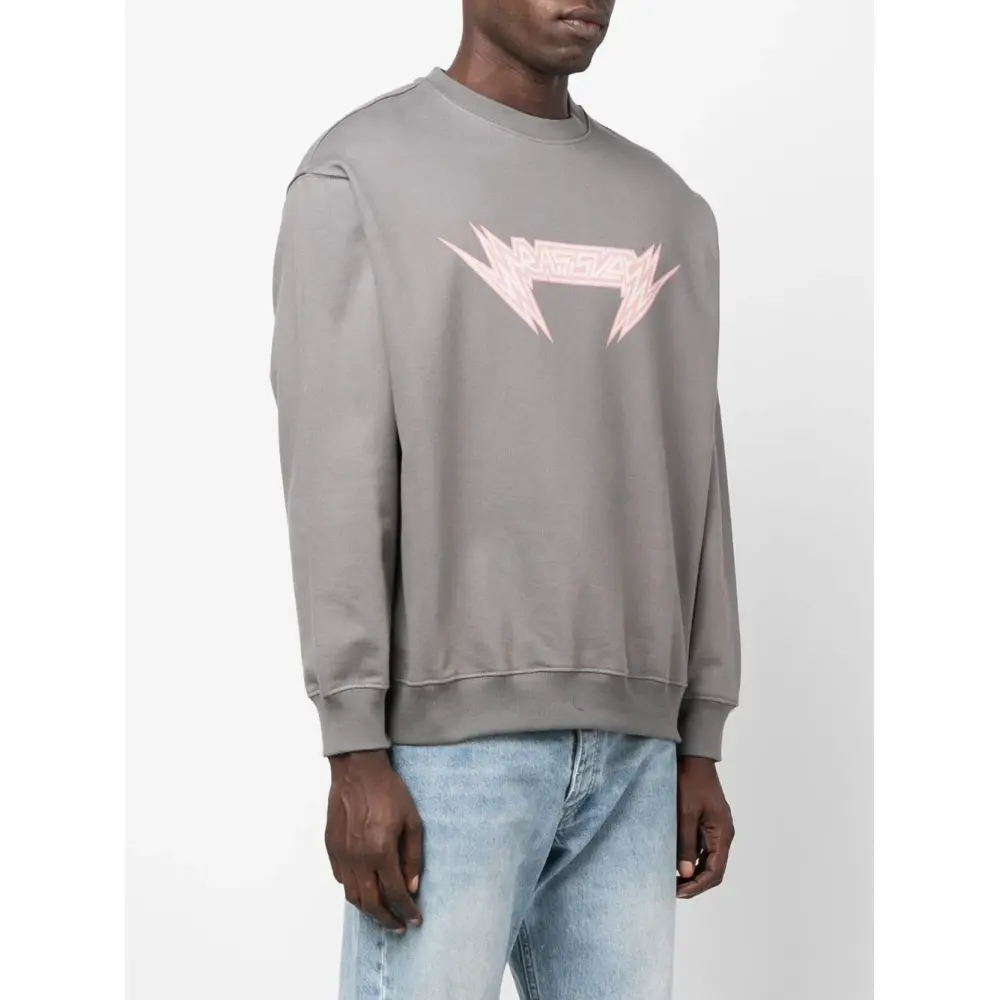 Светло-серый, хлопок, детали в рубчик, логотип спереди, круглый вырез, длинные рукава и прямой подол.