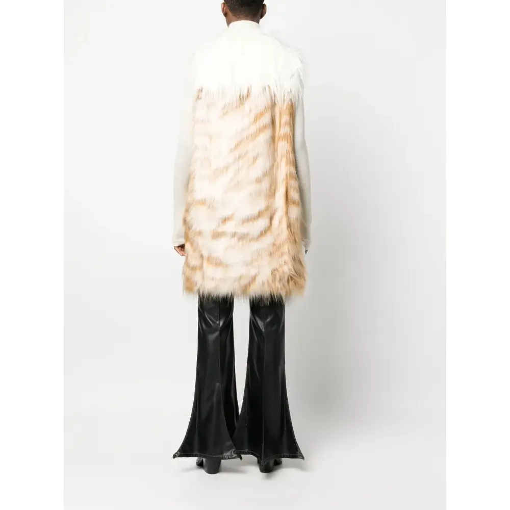 Бежевый, молочко, смесовый хлопок, отделка из искусственного меха, оправа оверсайз, без рукавов и длина миди.