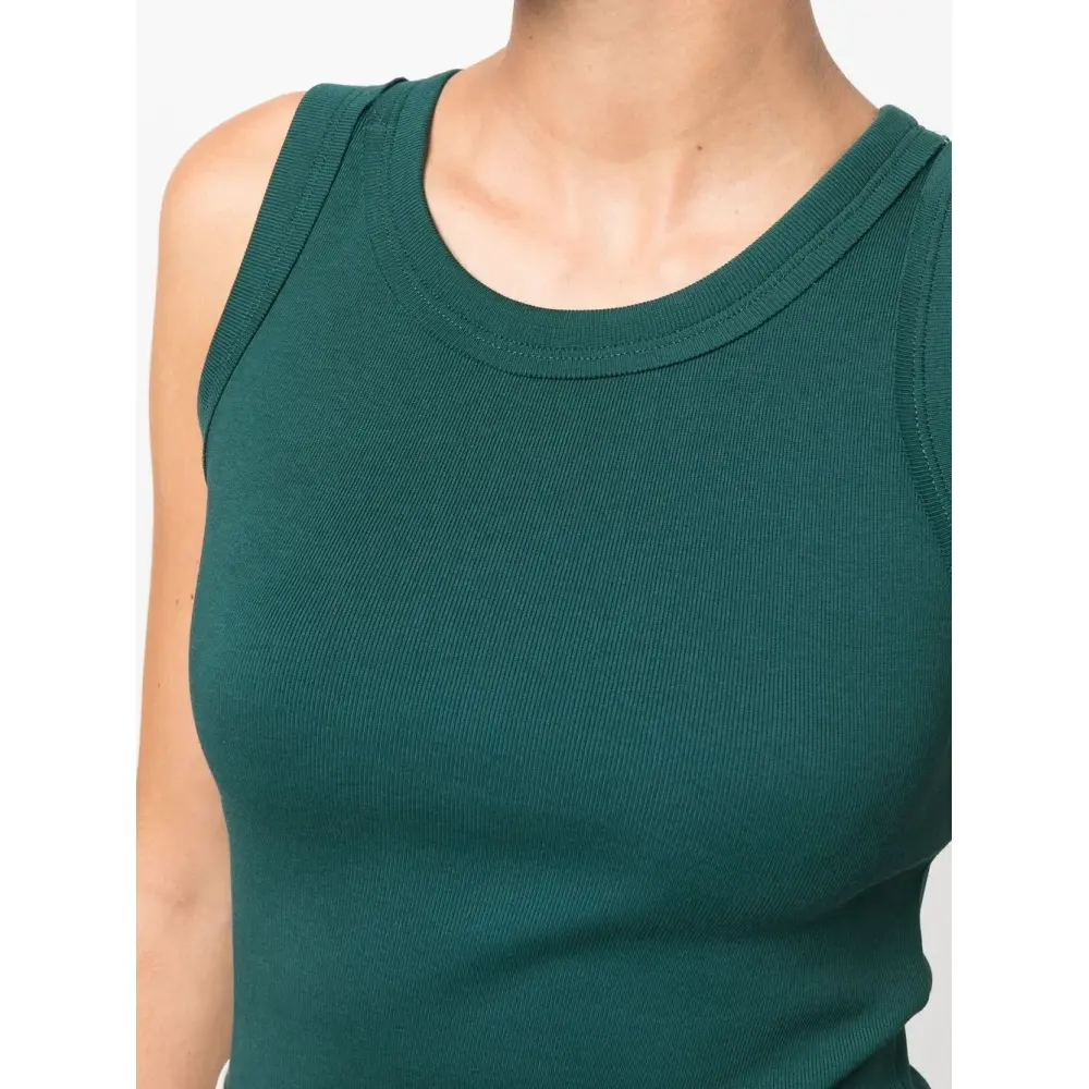 Темно-зеленый, органический хлопок, круглый вырез, без рукавов и прямой подол. Ответственный выбор: