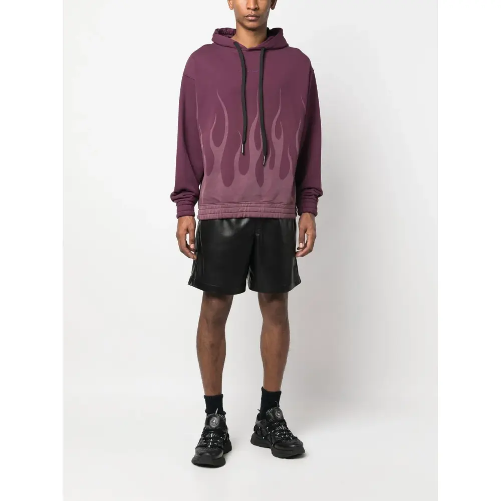 Темно-фиолетовый, светло-фиолетовый, хлопок, принт с изображением пламени, затягивающийся на шнурок капюшон, длинные рукава, эластичные манжеты и эластичный подол.