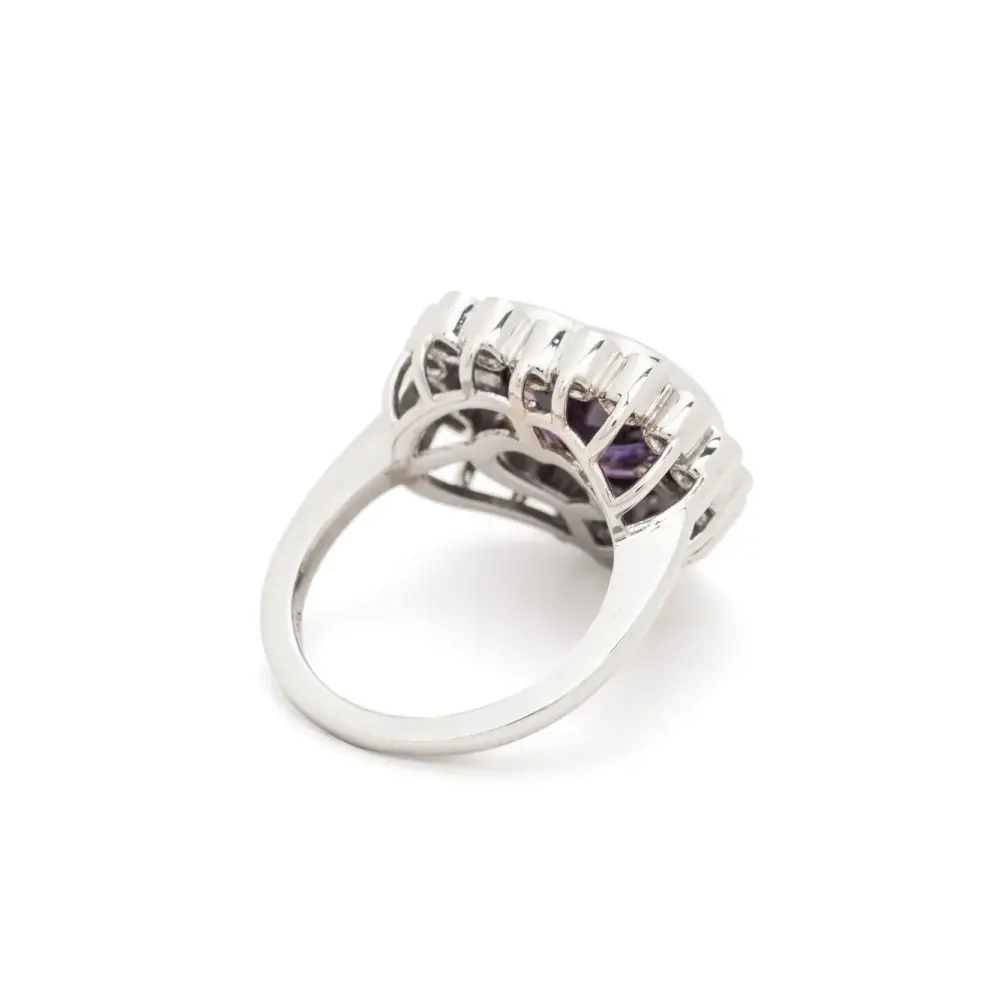 Серебристый, фиолетовый, серебро 925 пробы, огранка «сердце» и декор из кристаллов.