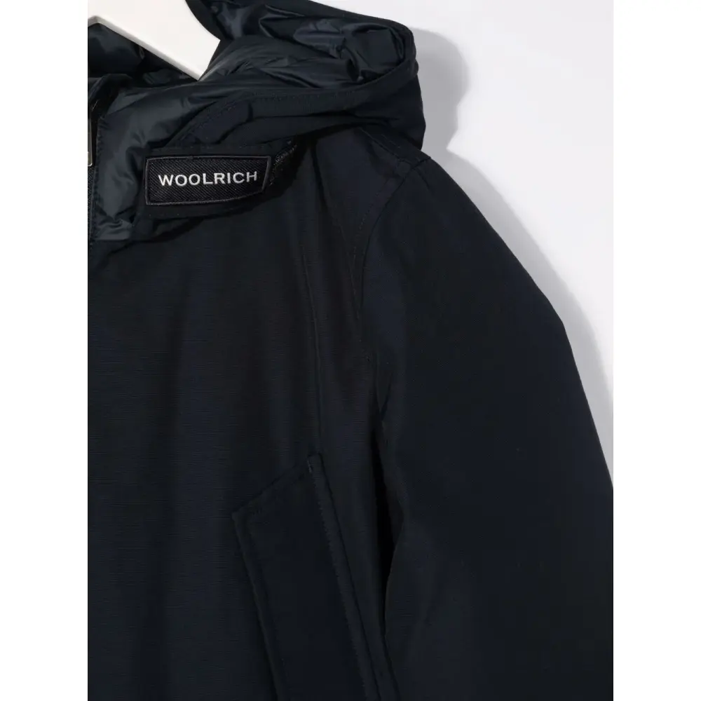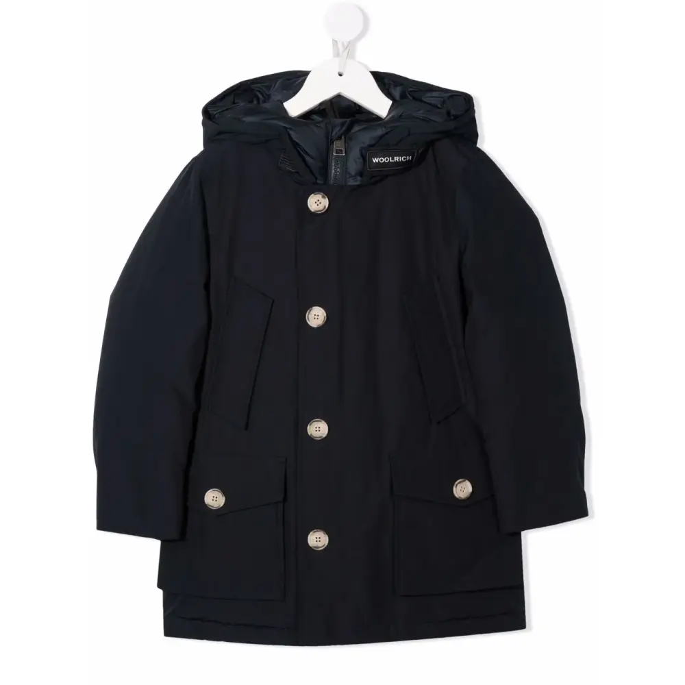 Наполнитель из смеси пуха и пера, воротник с вышитым логотипом, воротник-стойка, застежка на пуговицах спереди, длинные рукава и карманы на двух пуговицах.