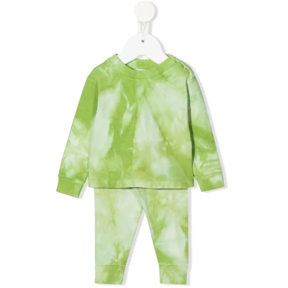 Цвет зеленого яблока, белый, органический хлопок, ткань в мелкий рубчик, принт тай-дай, круглый вырез, пуговичные застежки на плечах, длинные рукава, прямой подол, принт тай-дай, ткань в мелкий рубчик, эластичный пояс и прямой крой.