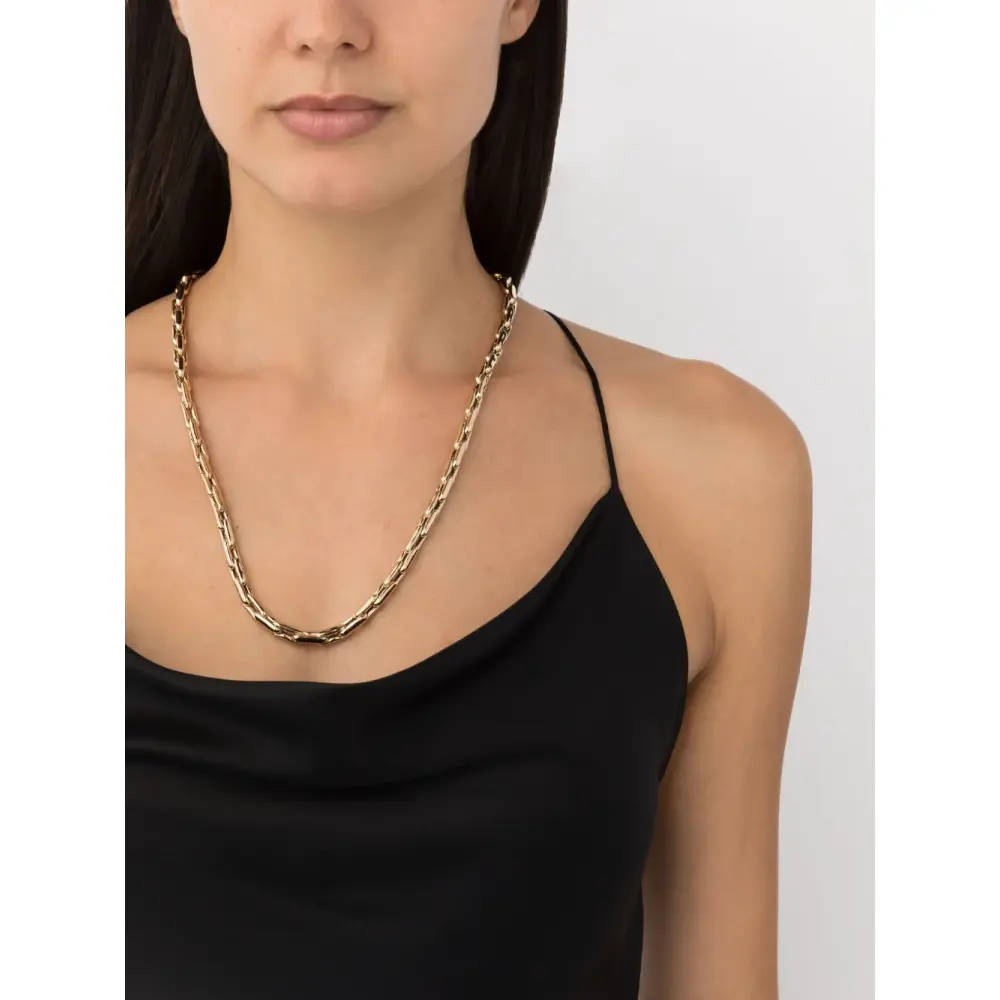 14-каратное желтое золото, глянцевая фактура, канатная цепь, подвеска с логотипом и застежка-карабин. Украшения могут потерять свой блеск из-за ежедневного использования и влияния внешних факторов. Чтобы этого избежать, используйте неабразивные чистящие средства для ювелирных украшений.