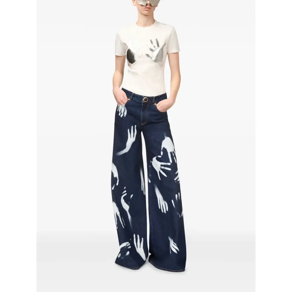 Широкие джинсы с принтом Hand