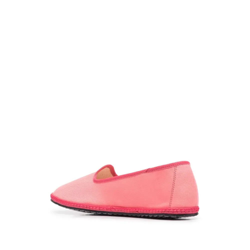 Розовый, темно-розовый, сочетание двух оттенков, закругленный носок, модель без застежки, стелька с логотипом и плоская резиновая подошва.