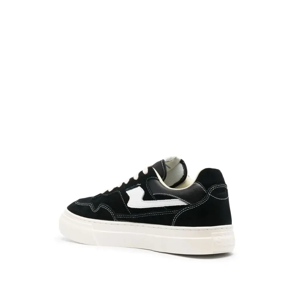 Черный/белый, телячья кожа, нашивка с логотипом на язычке, контрастная строчка, закругленный носок и плоская резиновая подошва.