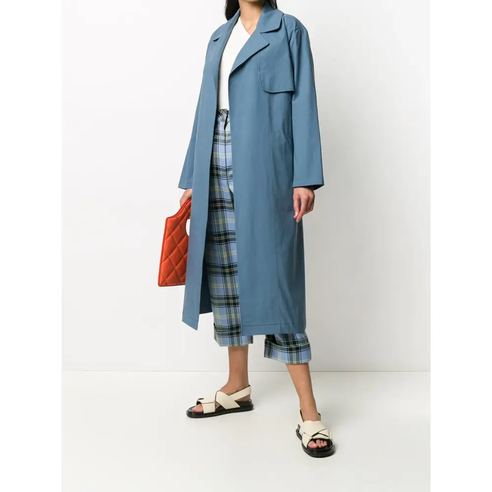 Тренч с поясом и длинными рукавами от Sara Lanzi. Зазубренный воротник, ремень на талии, длинные рукава, удлиненная модель и прямой подол. Цвет: синий.