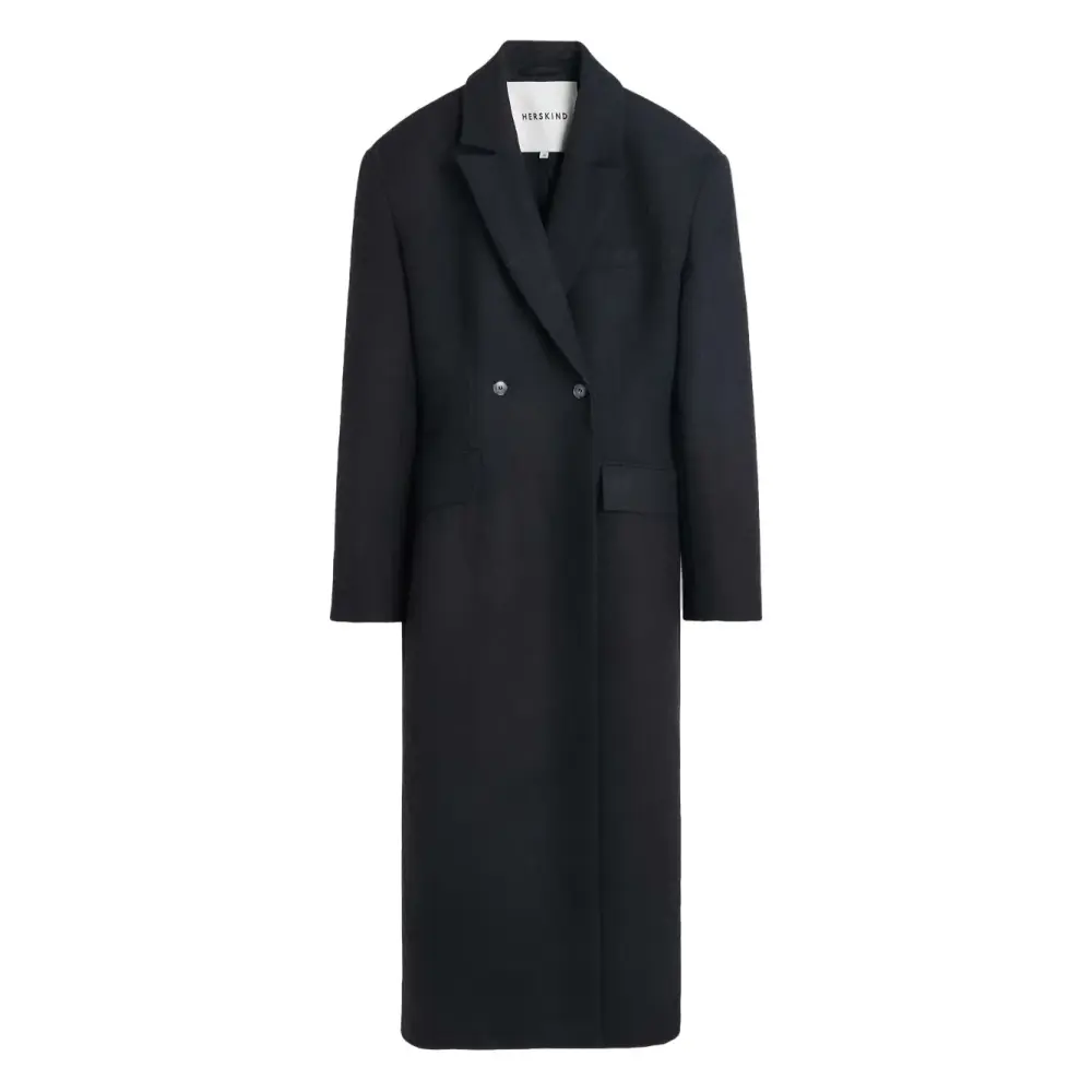 двубортное пальто с объемными плечами