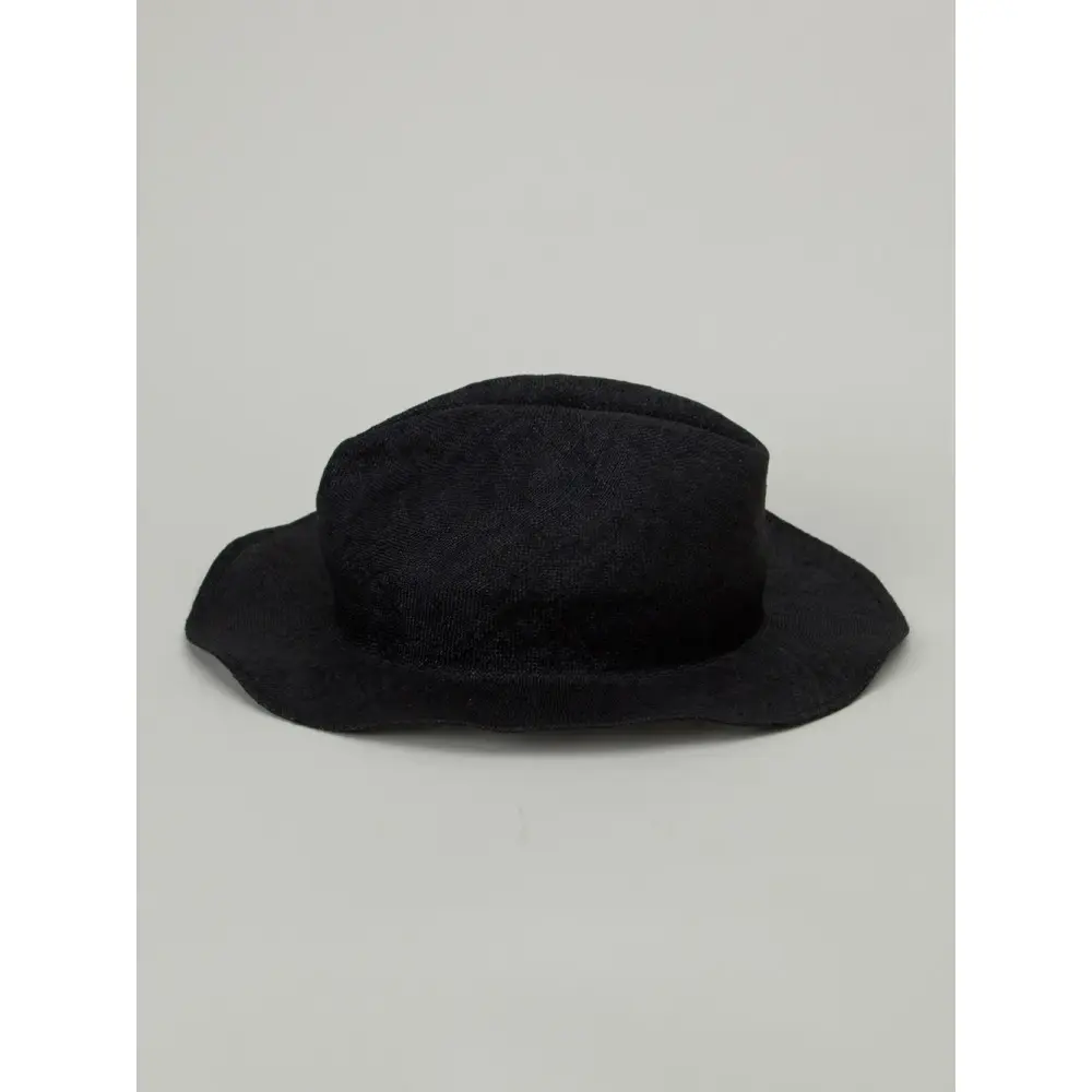 Чёрная сизалевая шляпа с широкими полями от Horisaki Design & Handel. Широкие поля, вогнутые стороны на макушке.