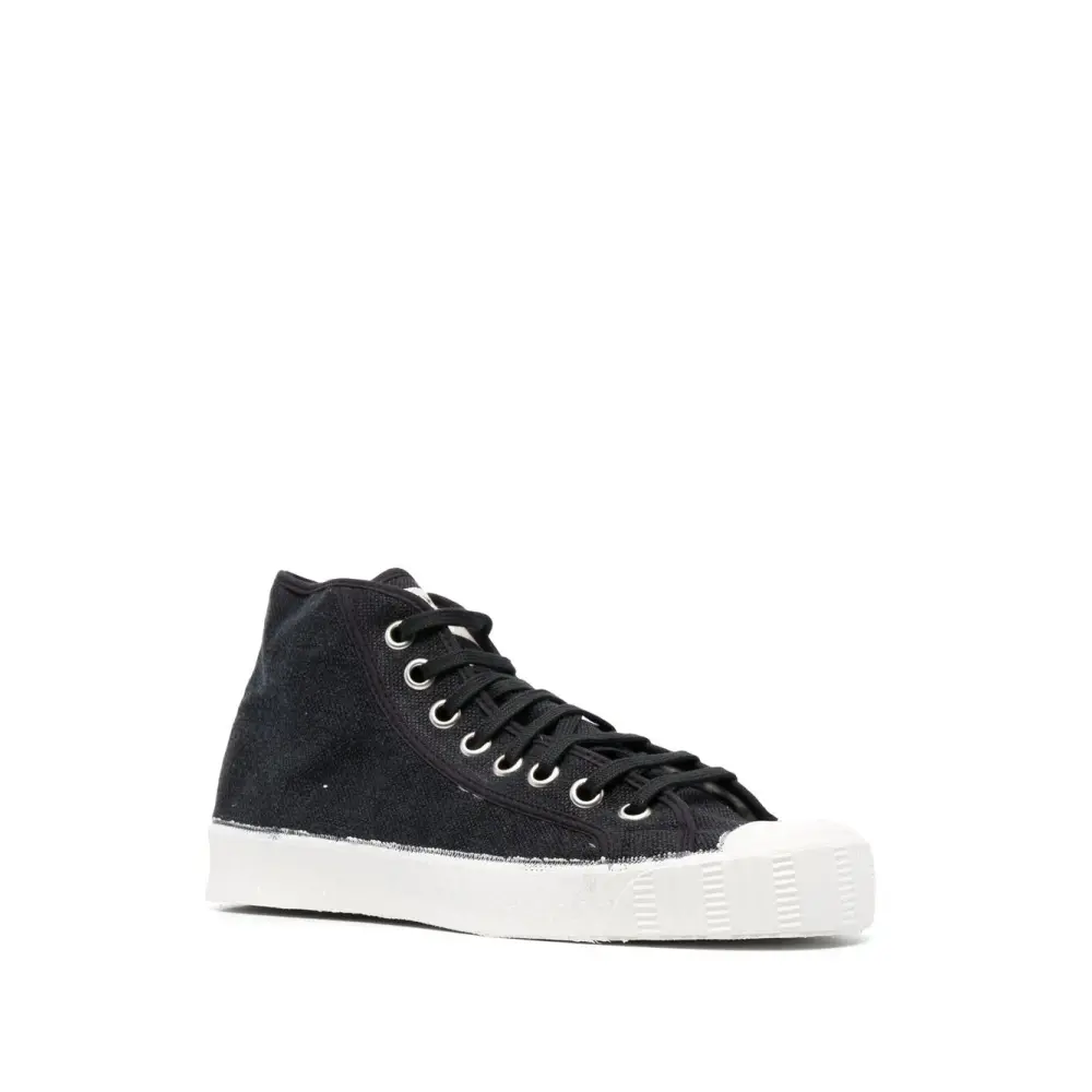 Эффект потертости, контрастный носок, плоская резиновая подошва и шнуровка спереди. Цвет: черный.