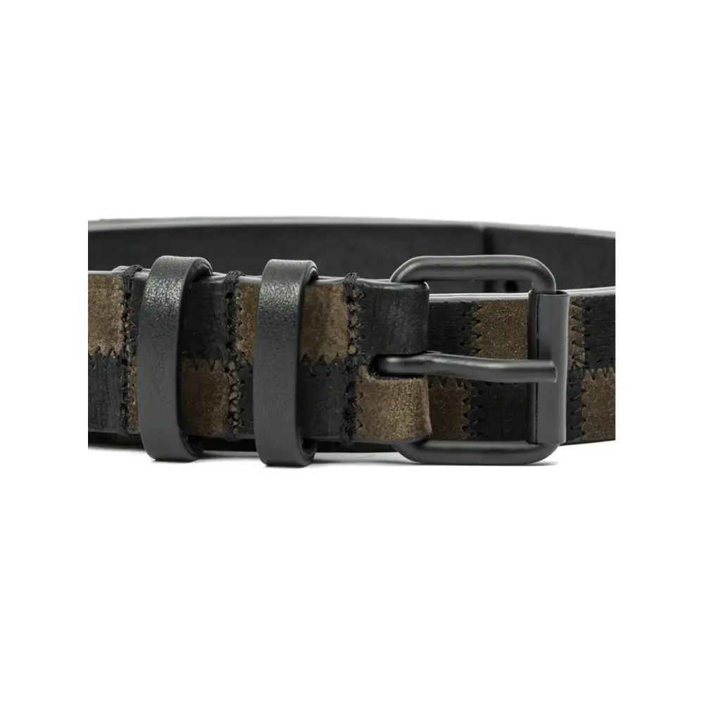 Черный с зеленым ремень из кожи и замши в клетку от Haider Ackermann.