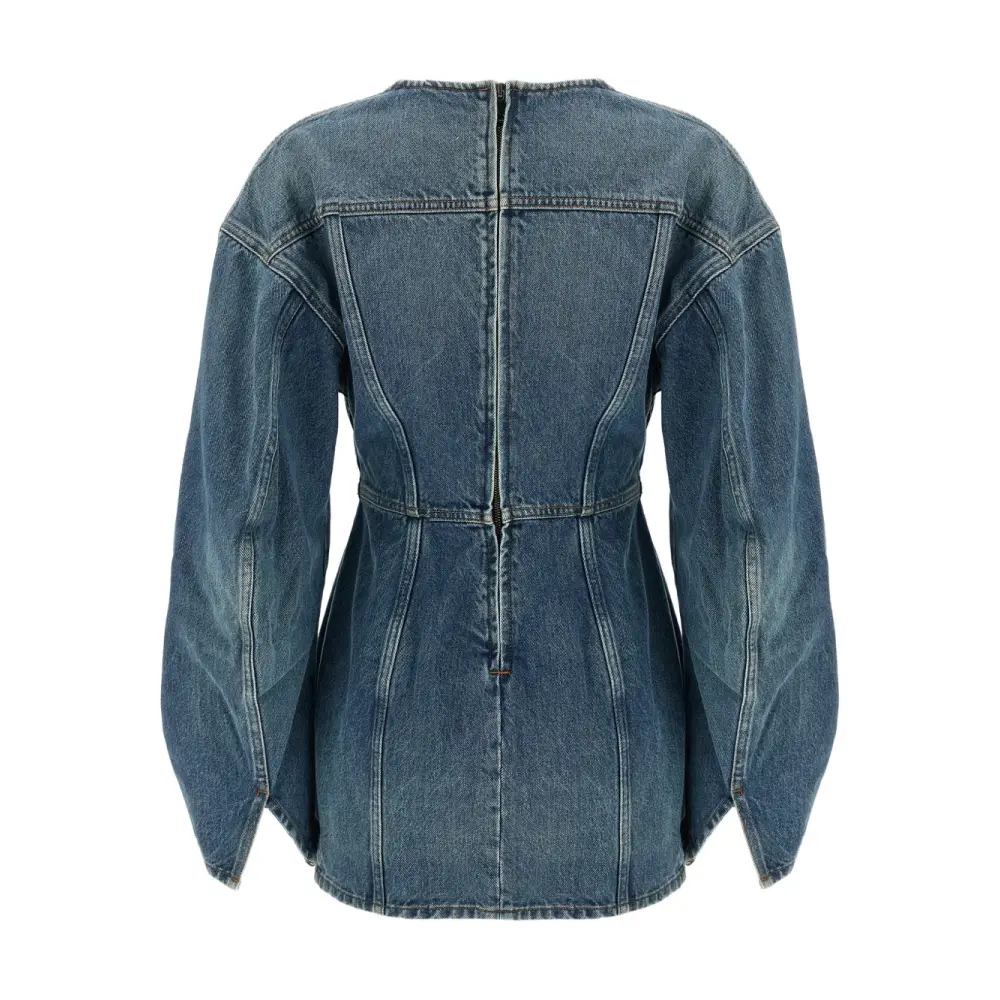 джинсовое платье с V-образным вырезом