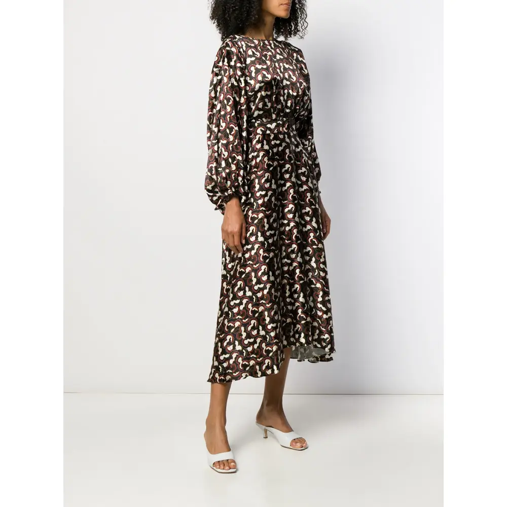 Платье Daybreak от Saloni. Круглый вырез, длинные рукава, сплошной узор и средней длины.
