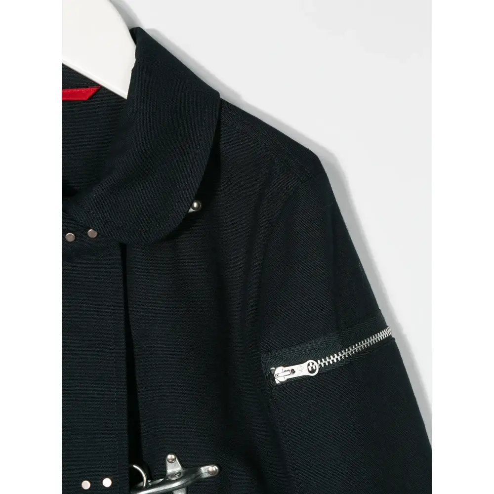 Пальто с полосками от Fay Kids. Классический воротник, застежка на крючок, длинные рукава, боковые карманы и прямой подол.