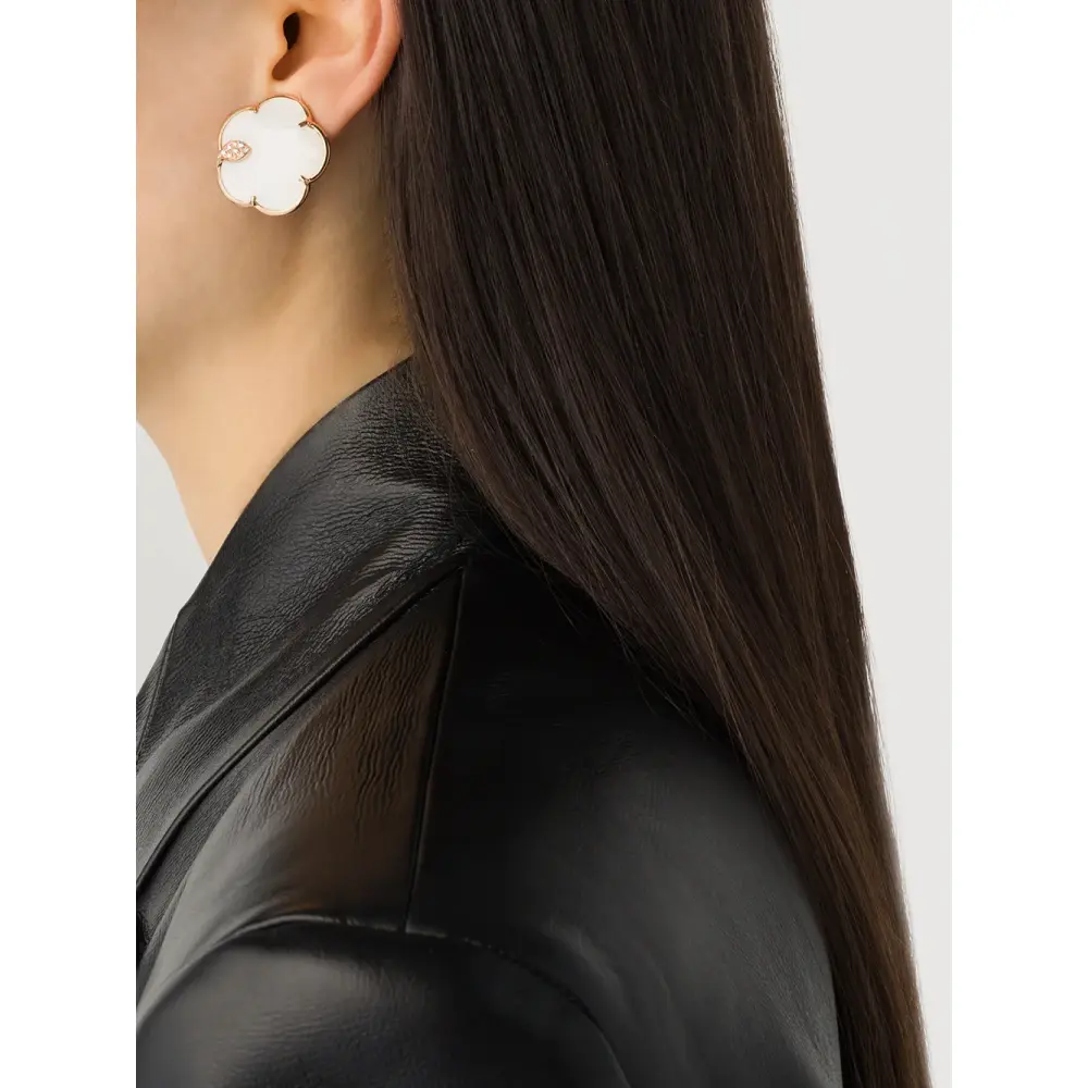18-каратное розовое золото 100%, Белый агат 100%, Перламутр 100%, Коричневый бриллиант 100%, Белый бриллиант 100%