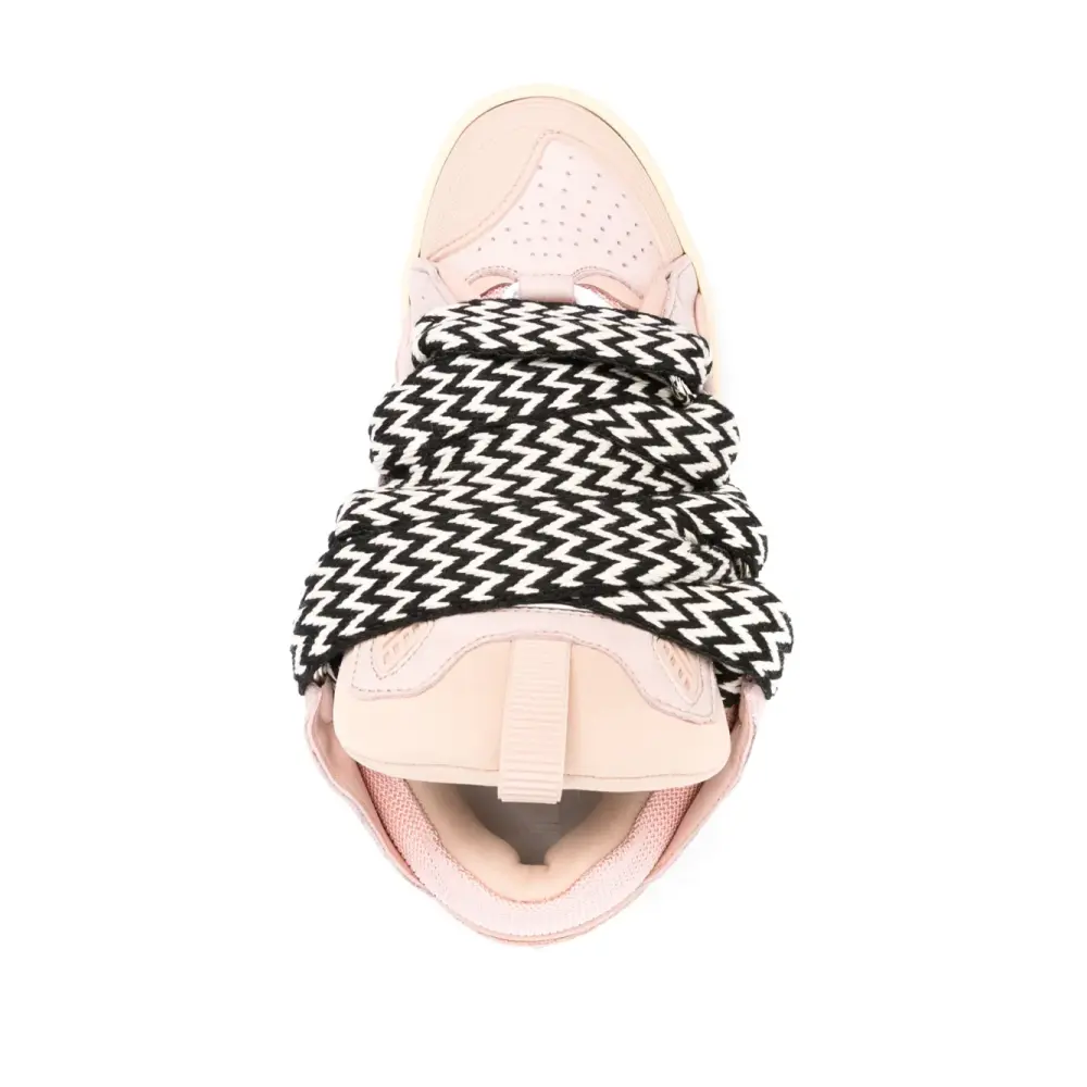 Розовый, кожа, замшевые вставки, перфорация, контрастные шнурки, петля для подтягивания на язычке, закругленный носок и плоская резиновая подошва.