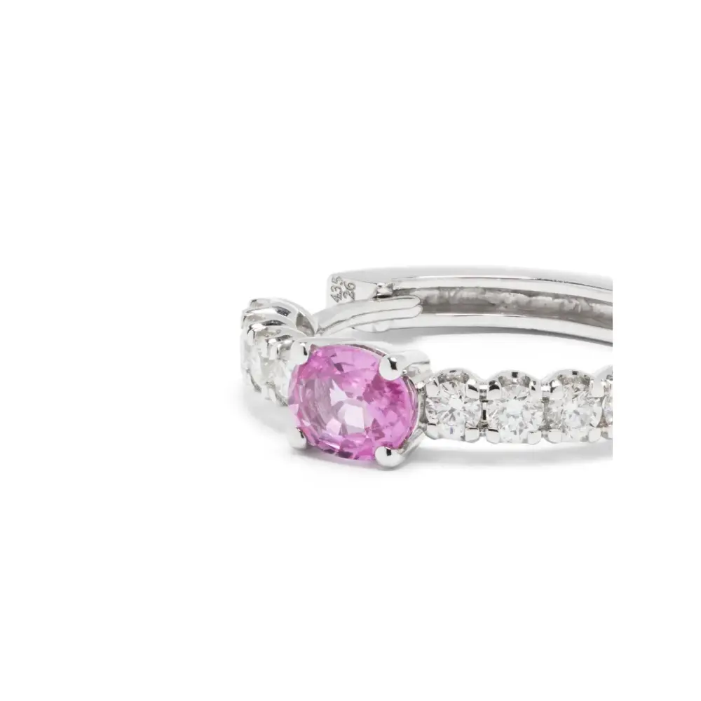 18-каратное белое золото 100%, Розовый сапфир 55%, Белый бриллиант 45%