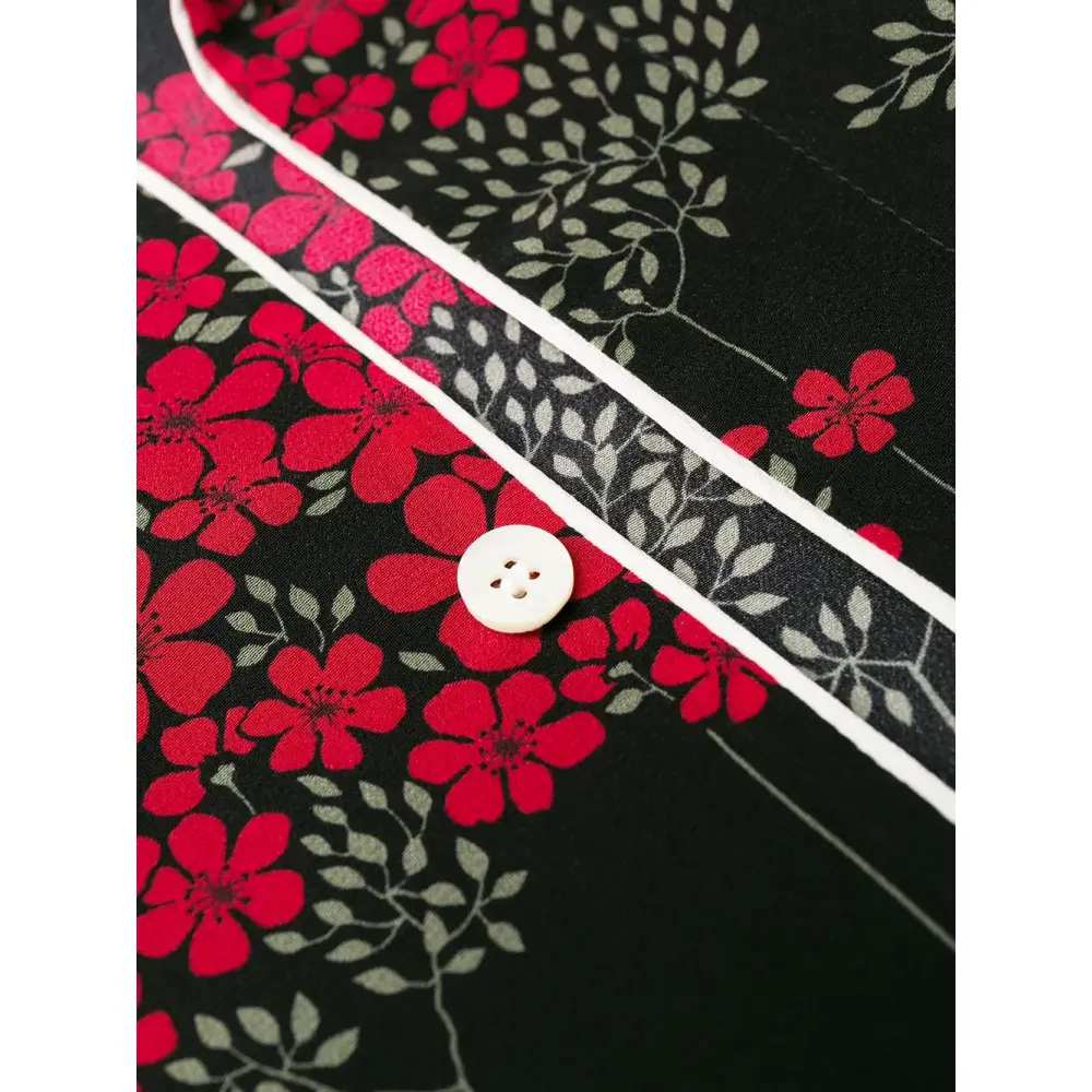 Рубашка с принтом Dreaming Peony от REDValentino (Ред Валентино). Открытый ворот, нагрудный карман, сплошной узор и контрастная окантовка. Цвет: черный.