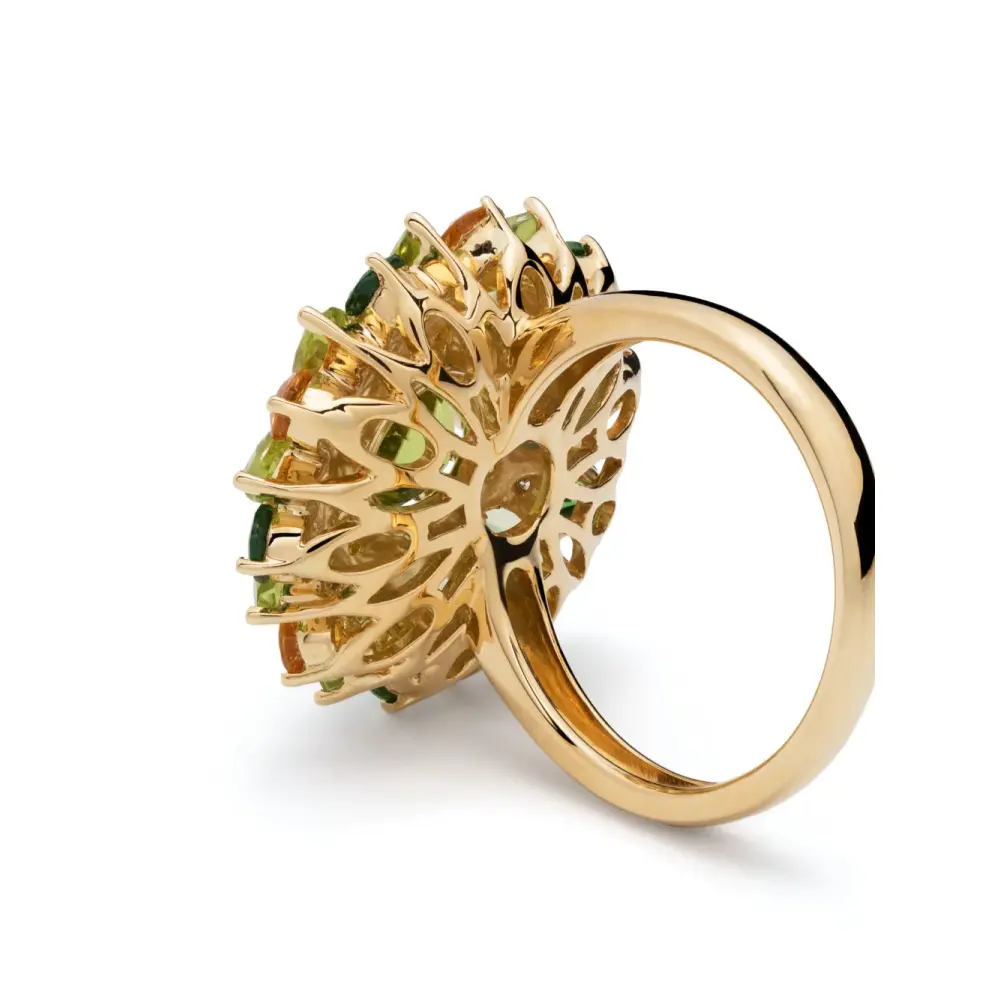 Сапфир 100%, Перидот 100%, Бриллиант 100%, 18-каратное желтое золото 100%, Гранат 100%