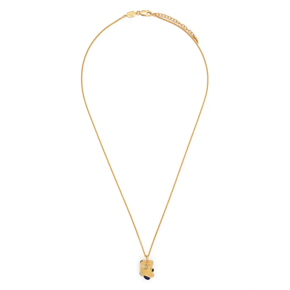 Золотистый, разноцветный, серебро 925 пробы, вставки из халцедона, бирюза, лазурит, аквамарин, украшение из поделочных камней, подвеска-акцент, покрытие из 18-каратного золота, канатная цепь, застежка-карабин и регулируемый дизайн.