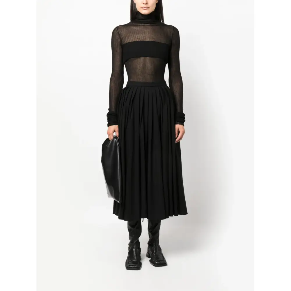 Черный, смесовый модал, трикотаж в рубчик, полупрозрачный дизайн, высокий воротник, удлиненные рукава и прямой подол. Этот товар как минимум на 50% состоит из материалов, которые признаны более безопасными для окружающей среды, и/или произведены с использованием методов, которые помогают сократить потребление воды и химических веществ. Узнать больше о том, какие товары получают отметку «Ответственный выбор», можно из материала «Как мы оцениваем экологичность и этичность».