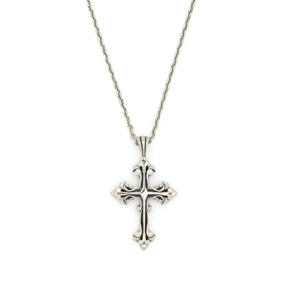 Серебристый, серебро 925 пробы, подвеска-крест, канатная цепь, металлический логотип и застежка-карабин.