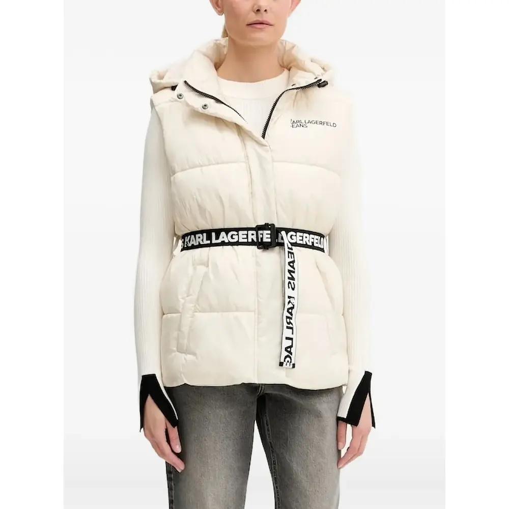 Дутый жилет с капюшоном и поясом