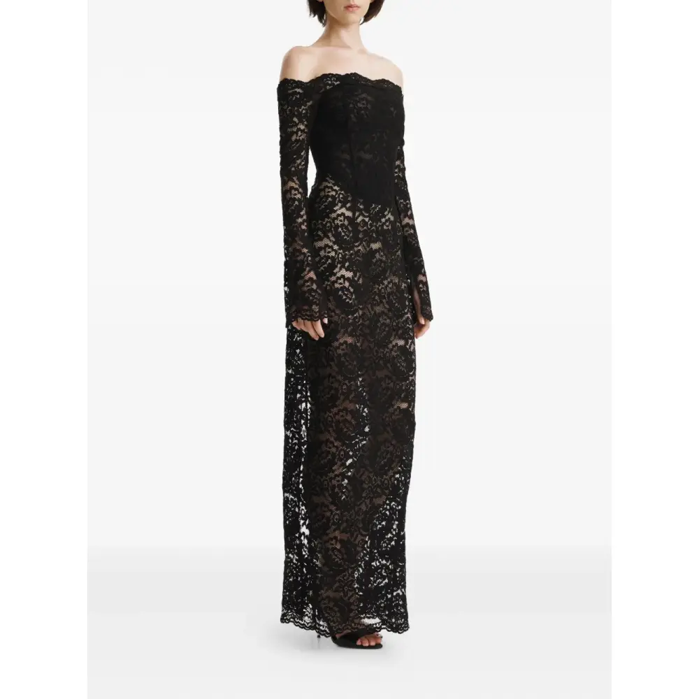 Кружевное платье миди с открытыми плечами