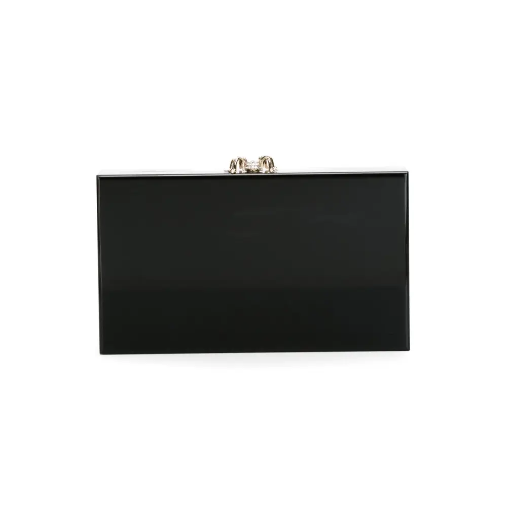 Черный клатч 'Pandora' с принтом собаки от Charlotte Olympia. Застежка-защелка в виде паука, прозрачный дизайн, внутренний мешочек.