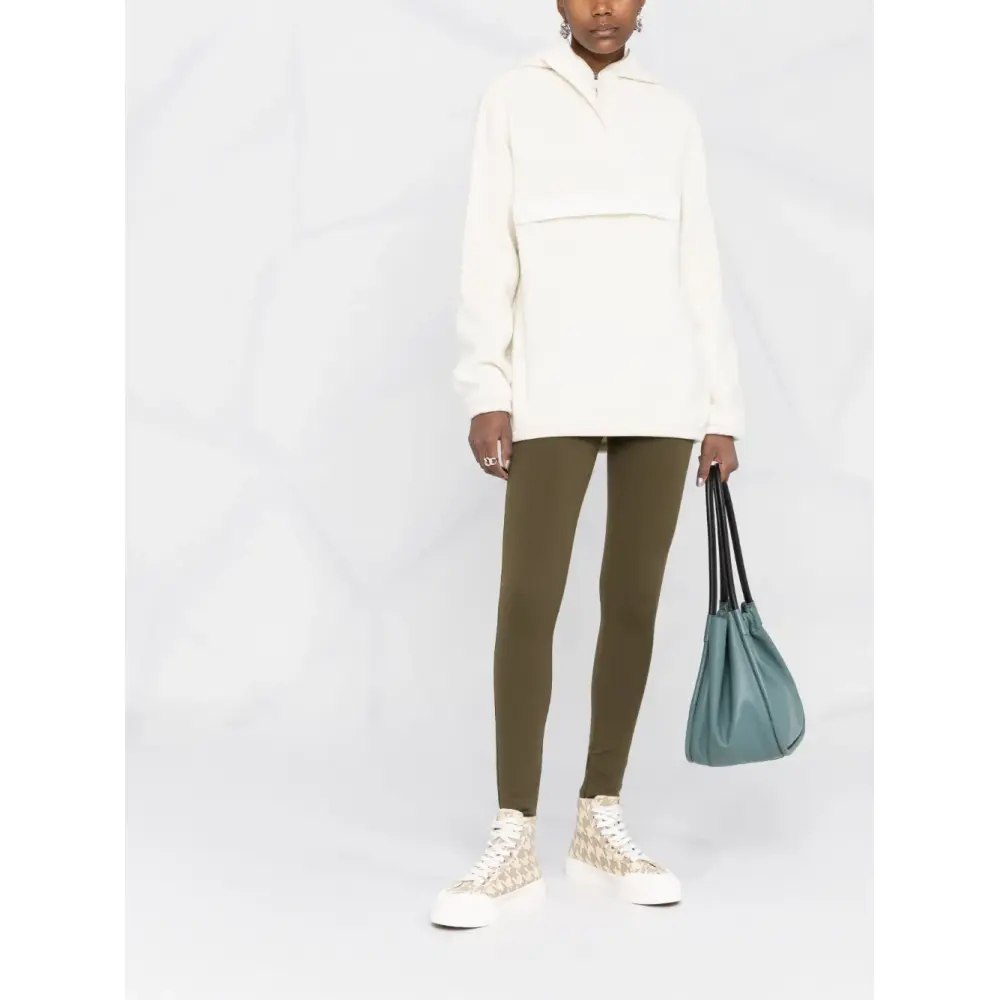 Классический капюшон, застежка на молнии спереди, приспущенные плечи, длинные рукава и подол с кулиской. Цвет: белый.