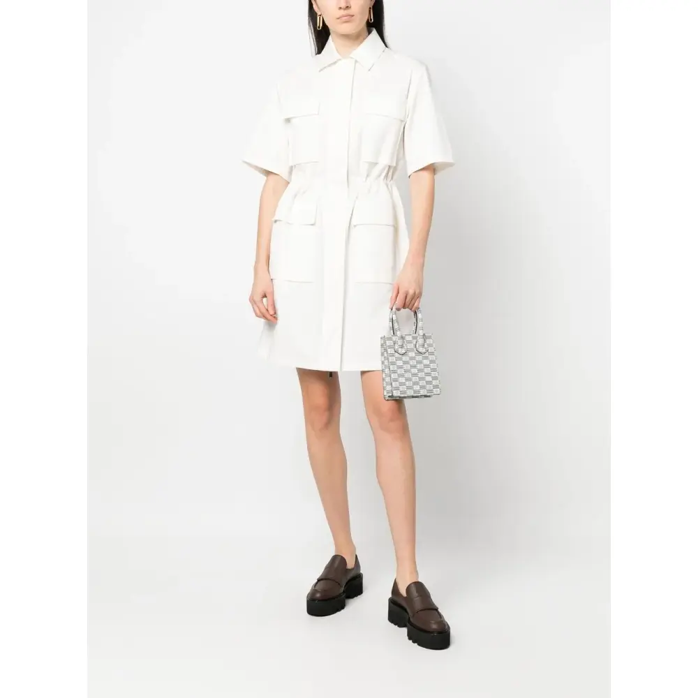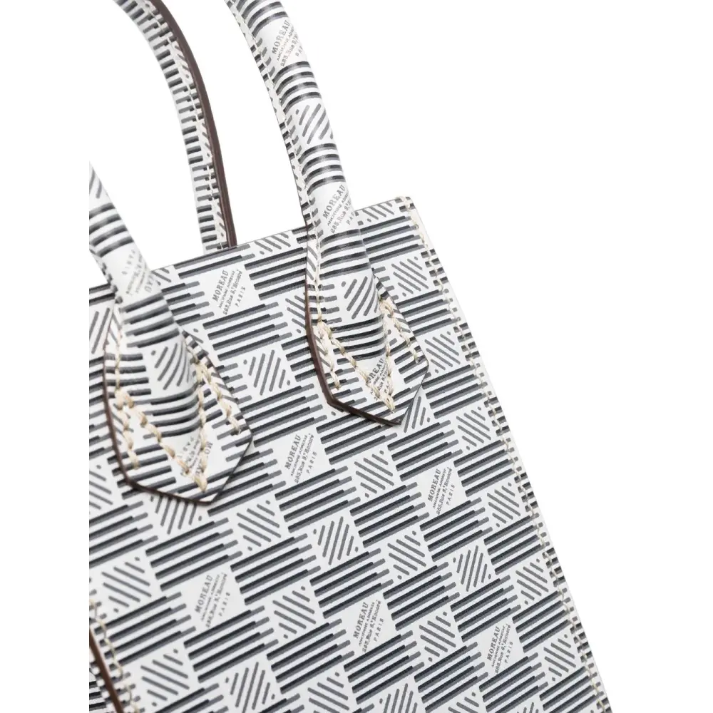Белый/черный, телячья кожа, сплошной графичный принт, две плоские верхние ручки, съемный ремень на плечо и основное отделение.