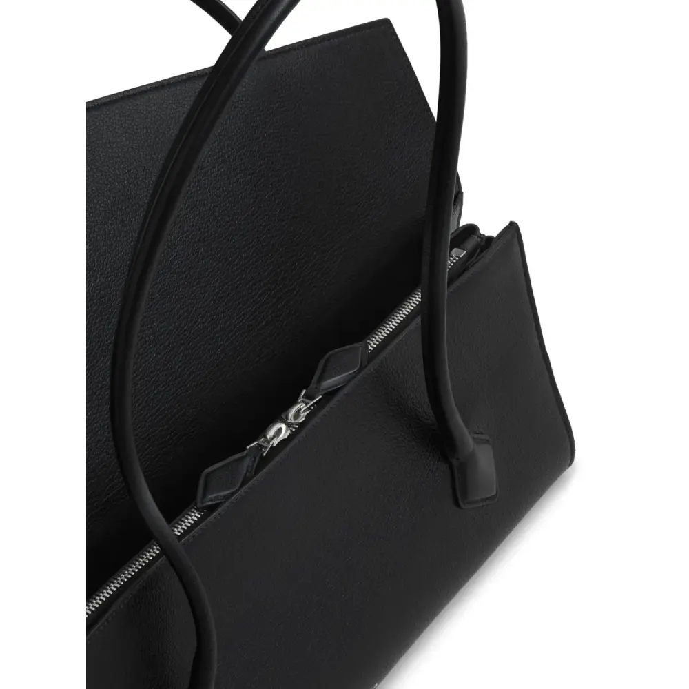 Длинные трубчатые ручки с декоративными завязками. Два больших боковых отделения с магнитной застёжкой и один карман с двойной застёжкой-молнией.