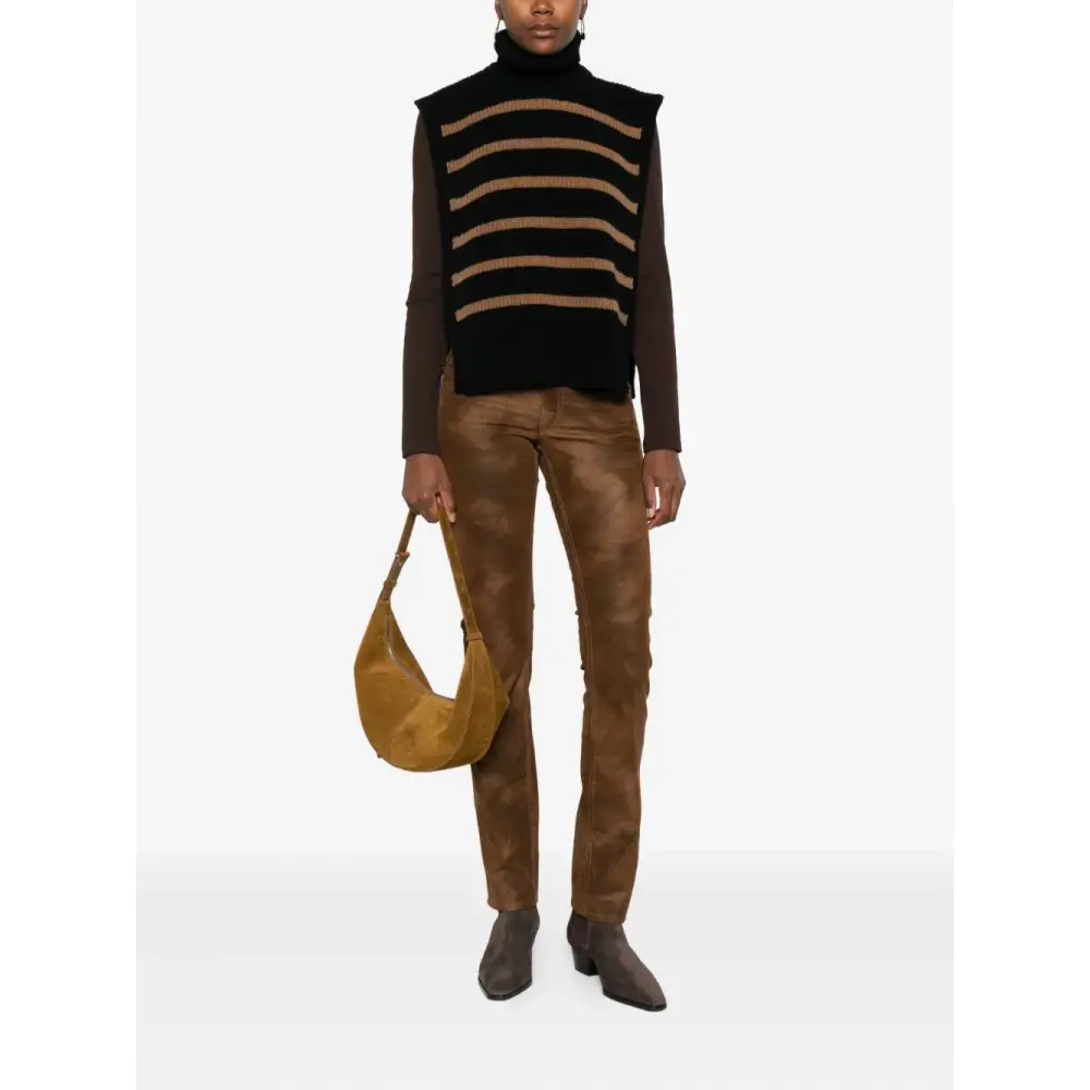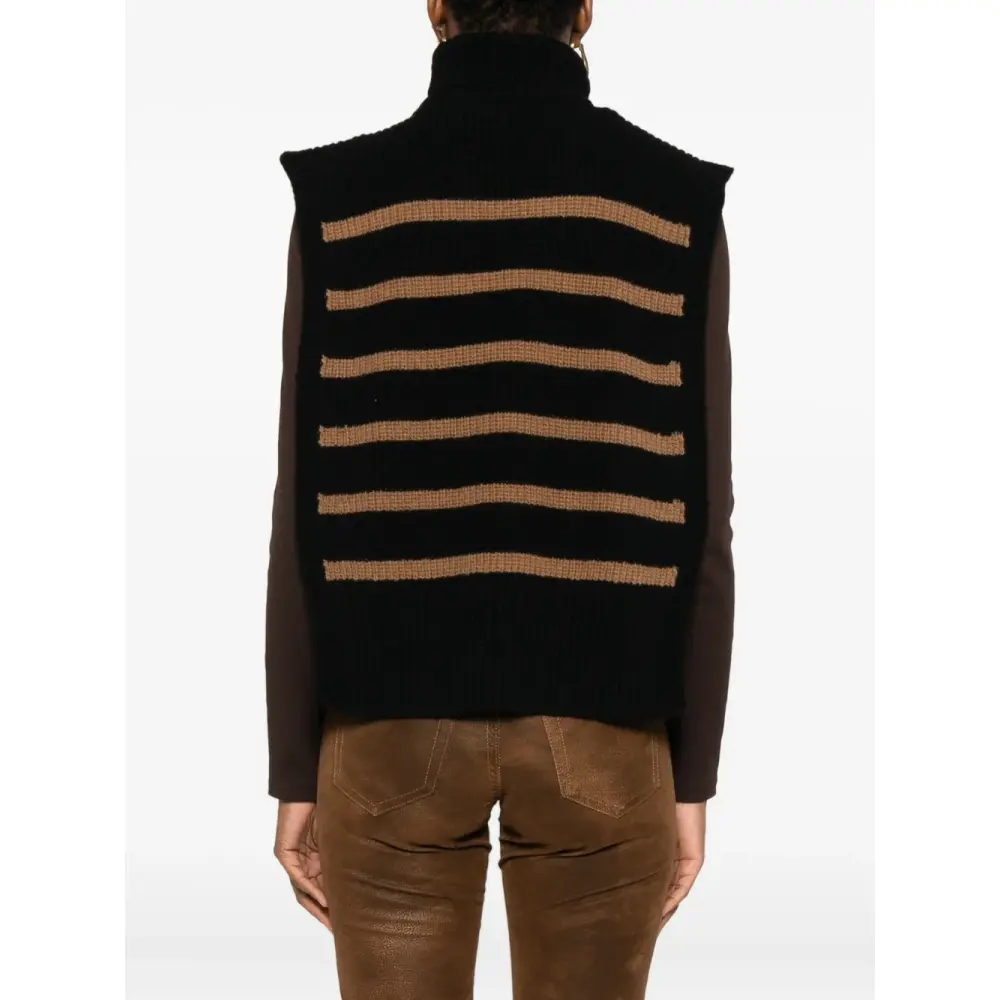 Полосатый свитер без рукавов с высоким воротником