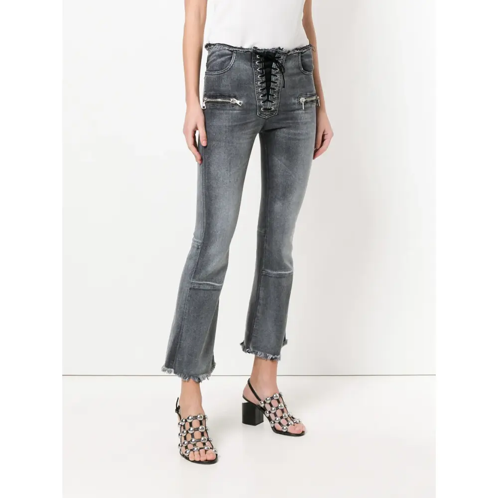 Серые укороченные джинсы из хлопкового микса со шнуровкой от Unravel Project.