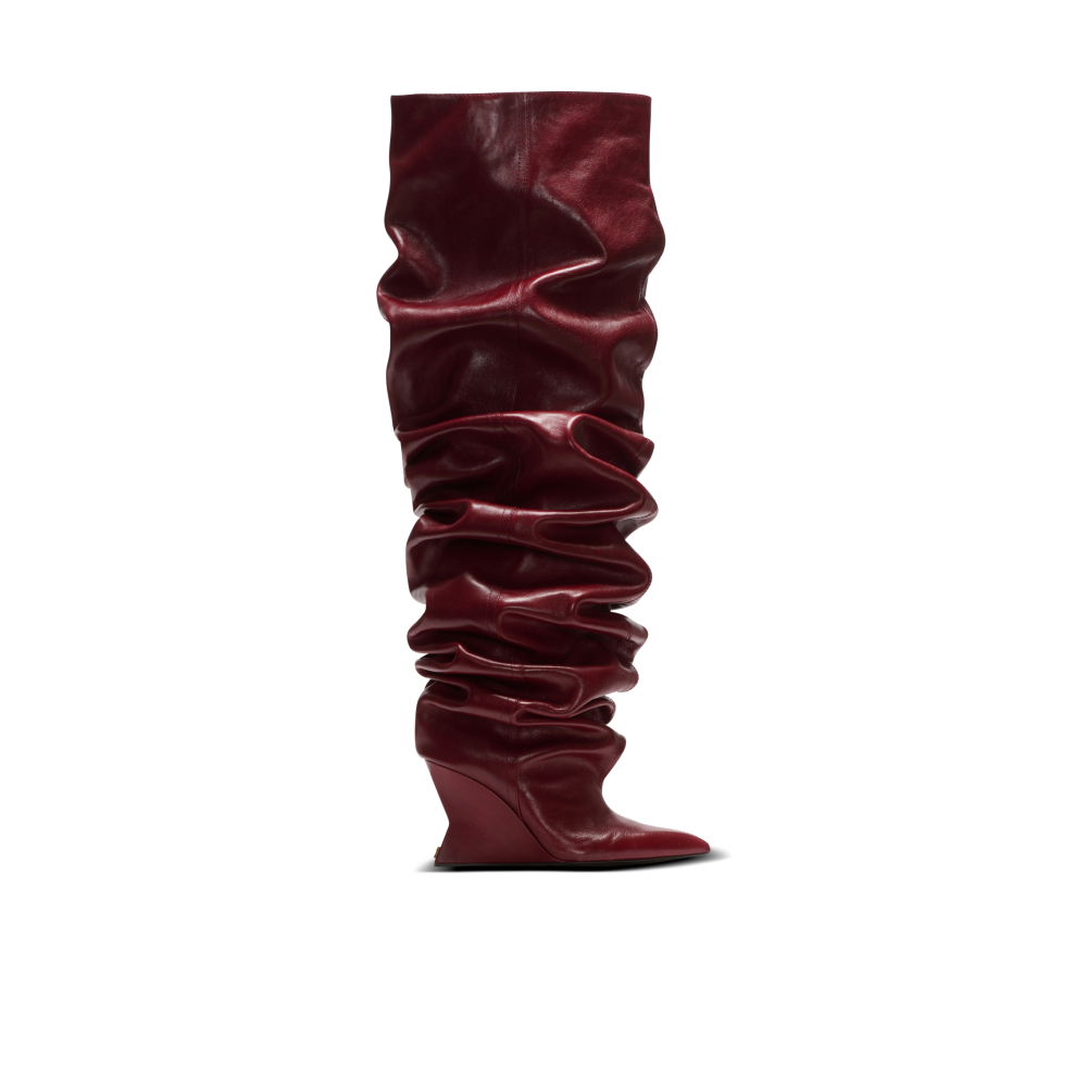 - Драпированный верх в стиле гетр, заходящий выше колена